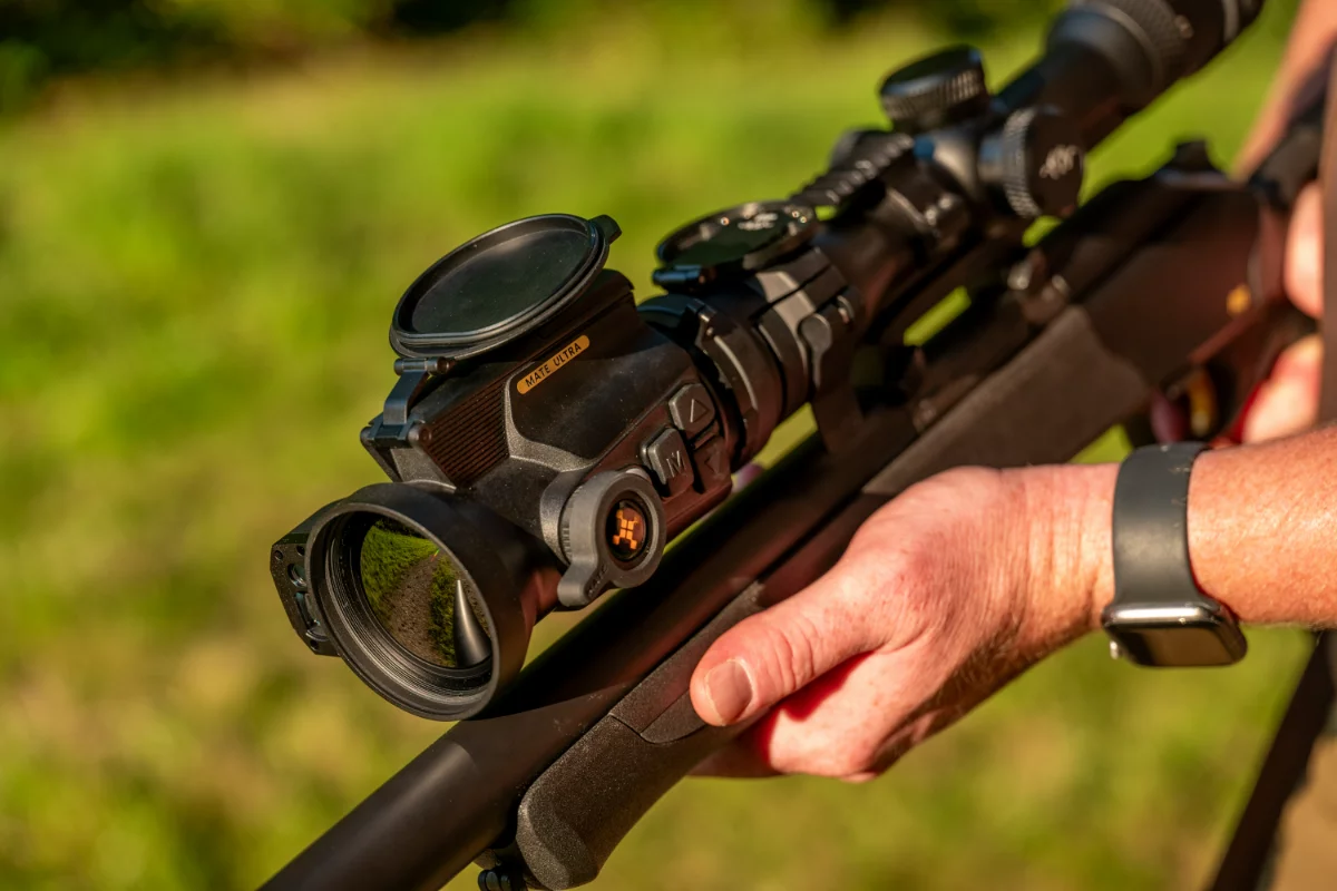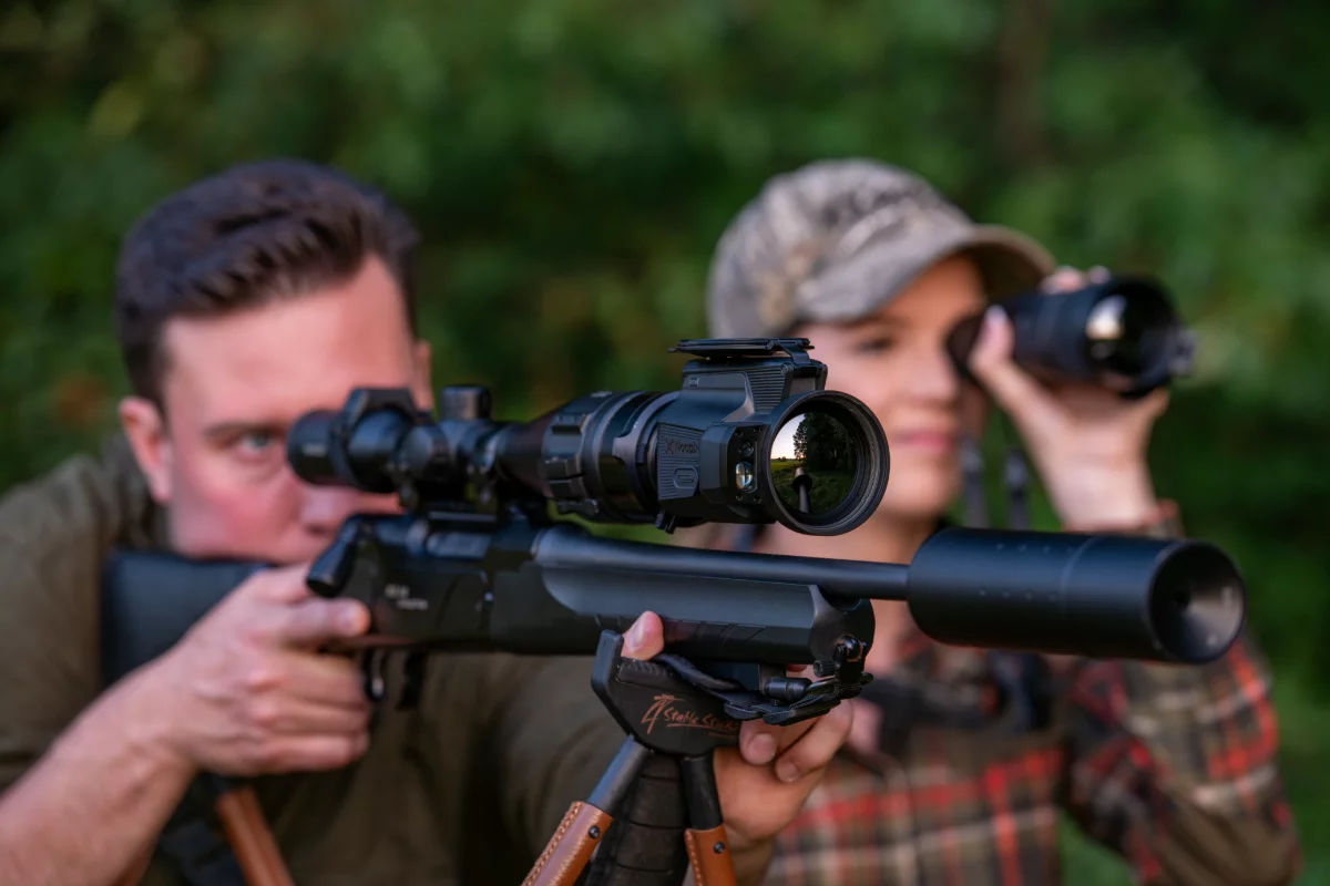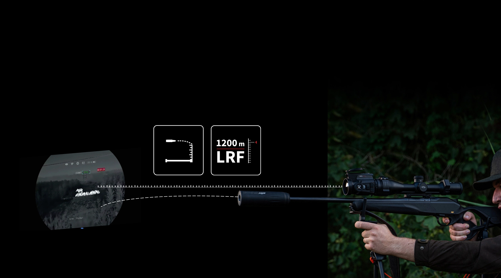 NOCPIX MATE har en inbyggd 1200 meters laseravståndsmätare. Nocpix har utvecklat en nästa generations ballistisk beräkningslösning som, jämfört med den tidigare versionen, direkt kan KORRIGERA den slutliga bilden och göra din siktpunkt lika med det verkliga målet baserat på den ballistiska beräkningen. Detta gör det möjligt för jägare att skjuta med självförtroende och välgrundade beslut.